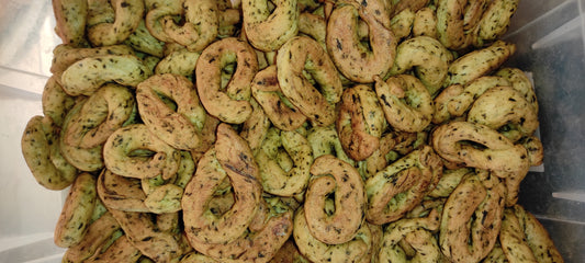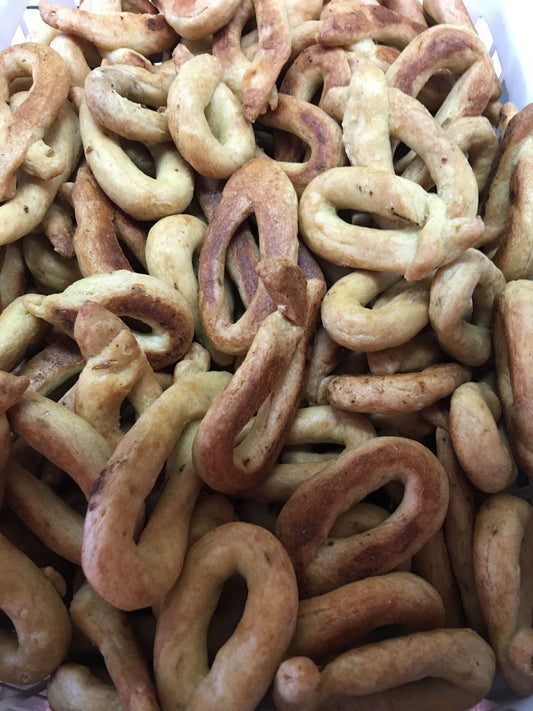 I nostri gustosissimi taralli bolliti, fatti seguendo l'antica ricetta. Solo ingredienti di primissima qualità, con olio extravergine d'oliva e semi di finocchio. 🥨